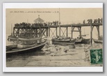 La jetée d'Eyrac a été construite en 1845, maintes fois détruite par les "éléments" et inlassablement reconstruite. Solidement reconstruite comme le montre cette belle carte photo où la foule s'agglutine sur le tablier de la jetée pour regarder... On ne sait pas quoi, mais cela devait avoir de l'intérêt à en juger par le nombre de personnes...
